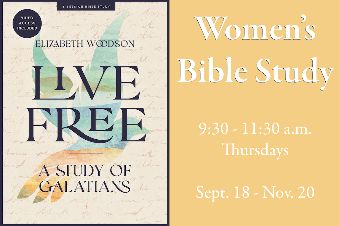 We'll study Galatians using a guide by Elizabeth Woodson, "Live Free: A Study of Galatians," and teaching by Blacknall women. You can order a copy of the guide through the church (by selecting "Study Guide" on this registration form) which will be available for pickup Sept. 18. If you buy your own copy online or through a local bookstore, please bring it on the first day of study. We'll watch the author's introduction video, and you might want to take notes on the pages she's provided in the book.