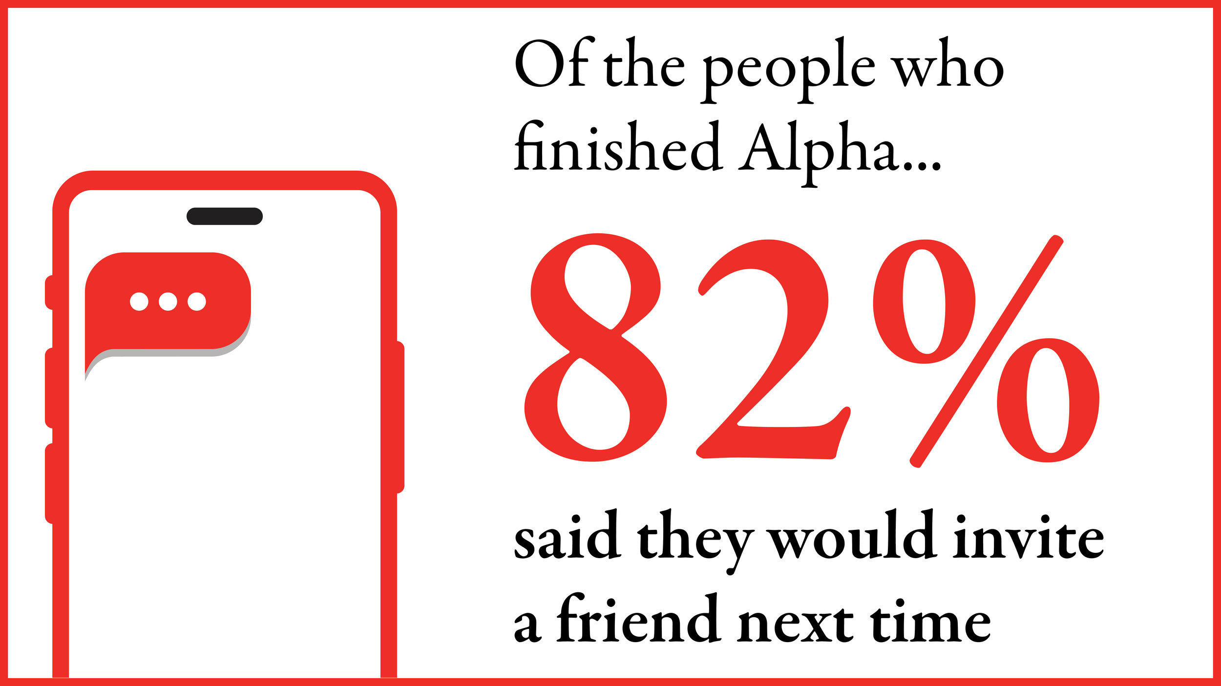 Nearly all guests who joined Alpha came because of a personal invitation from a friend, relative or colleague. “It was way bigger than we ever expected,” Brandon said. Because Alpha began with an ask from someone they knew, the transition into the series felt more natural and welcoming. “It reminded me of the importance of community with other believers,” a guest shared.
