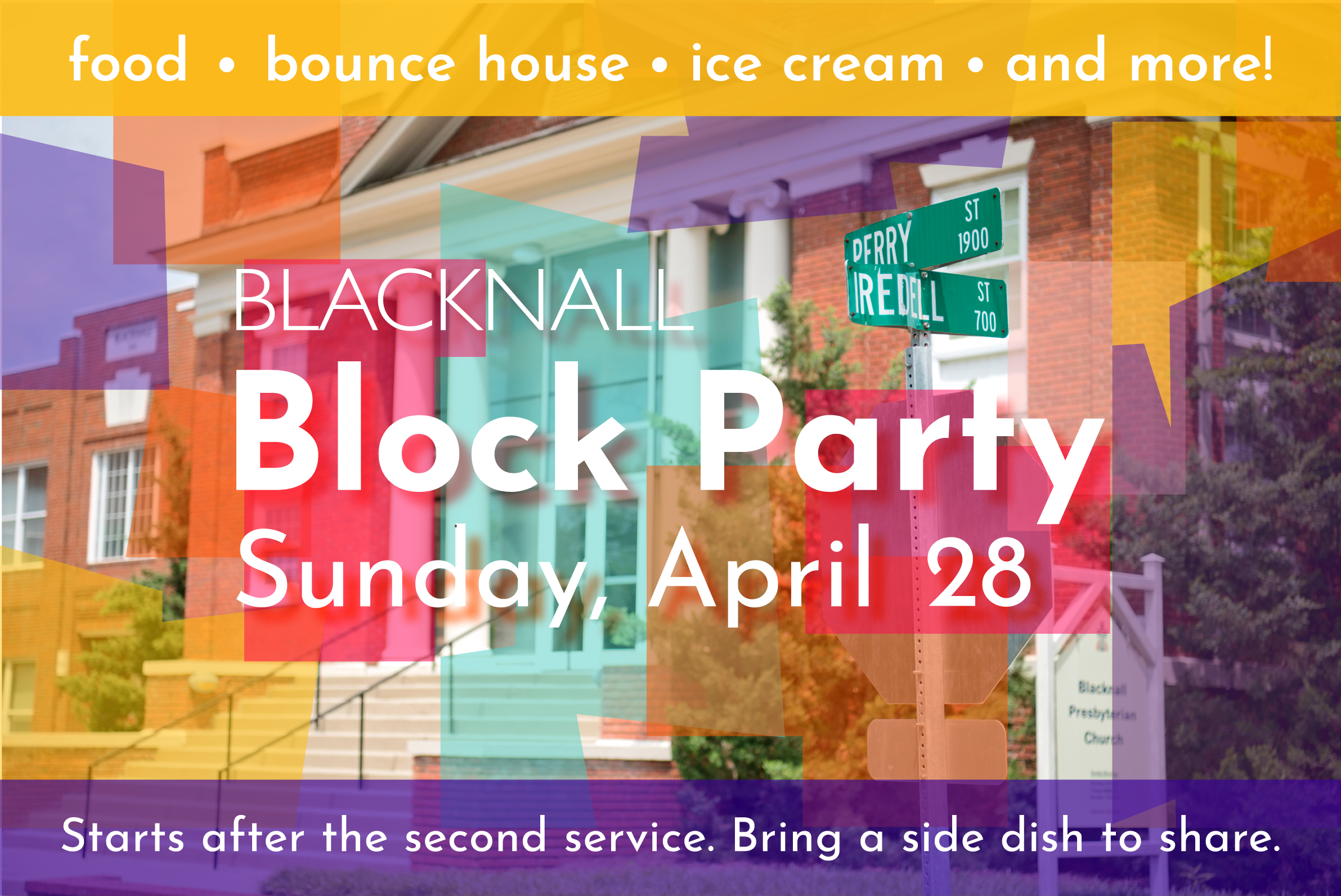 On Sunday, April 28, come celebrate the spring with Blacknall. All activities and food at this family-friendly block party are FREE! The party will start immediately following the second service.