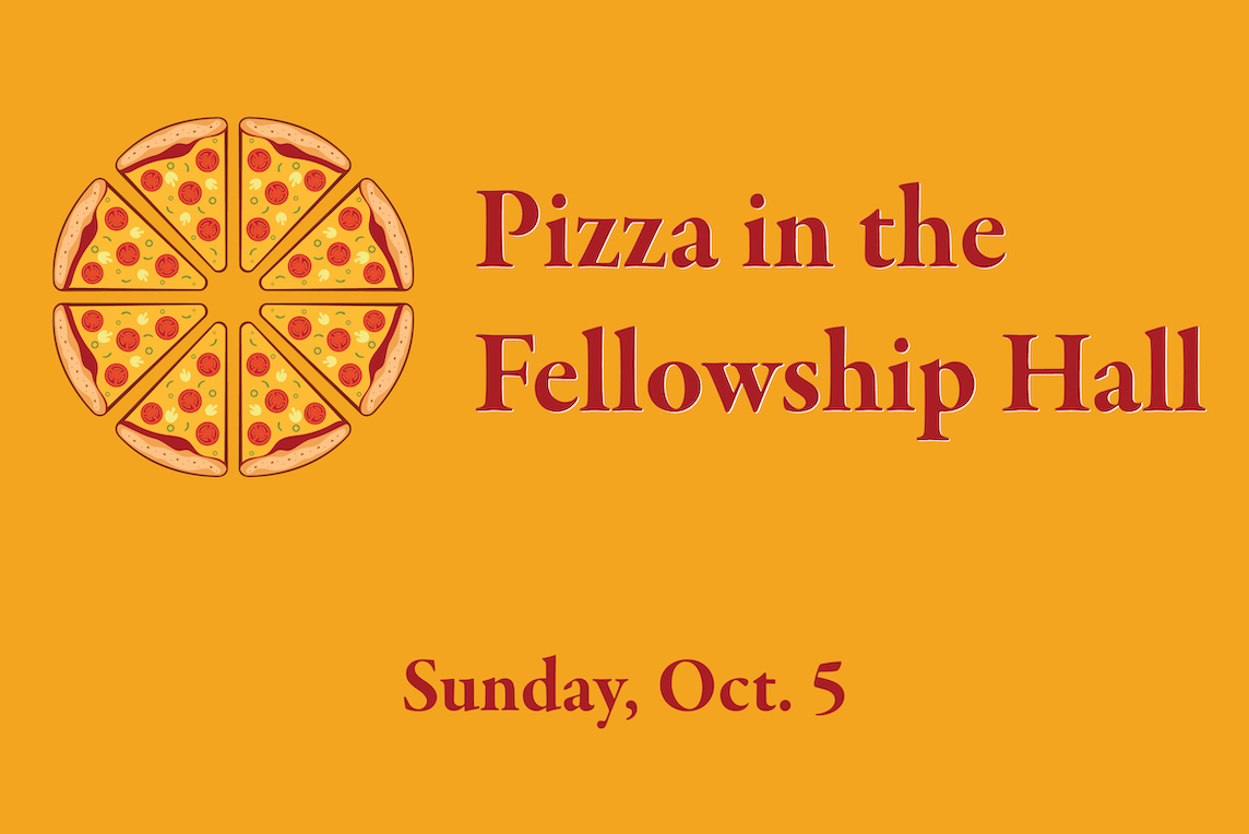 Come get a slice or two on Sunday, Oct. 5, after activities wrap for our Evening Prayer Service and children's and youth programming. Pizza will be served in the Fellowship Hall from 6 - 7 p.m.